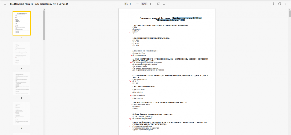 Ответы к заданиям: Пробные тесты для ЕОП по “Медицинской физике” 2018