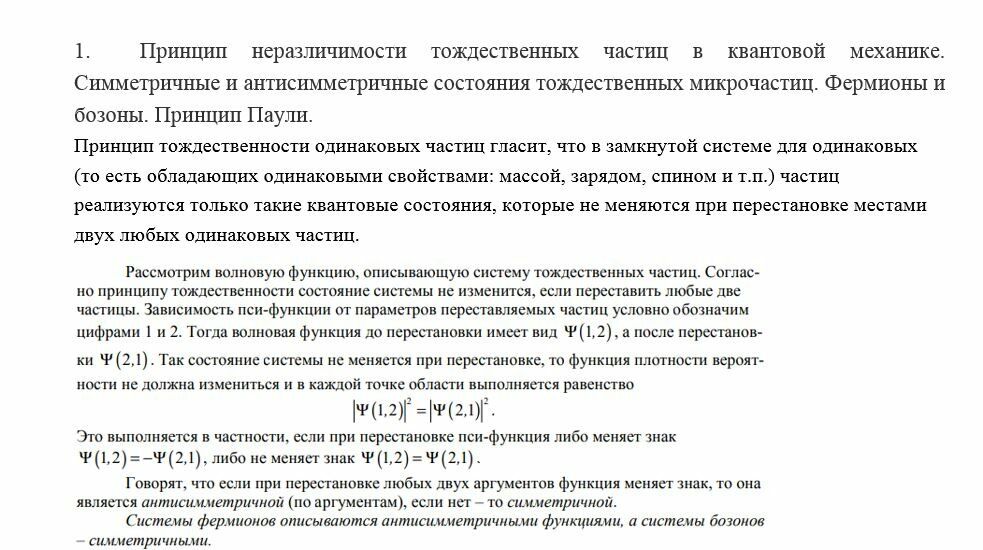 - Принцип неразличимости тождественных частиц в квантовой механике. Симметричные и антисимметричные состояния тождественных микрочастиц. Фермионы и бозоны. Принцип Паули.