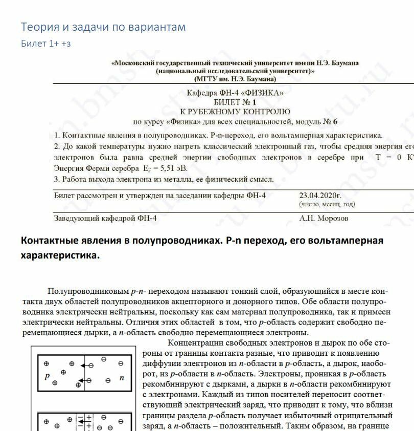 Для студентов МГТУ им. Н.Э.Баумана по предмету ФизикаТеория + ПрактикаТеория + Практика