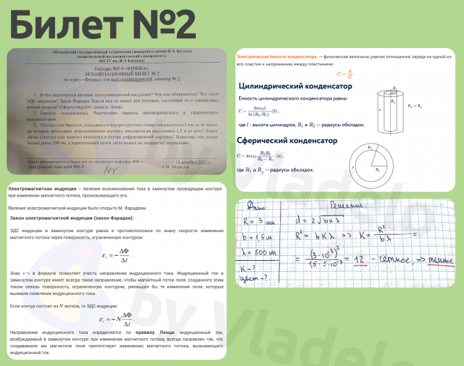 Разбор ВСЕХ билетов из экзамена по физике 2023-2024 г., 2 курс, 3 семестр