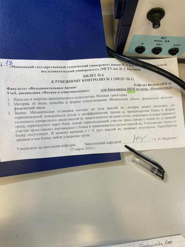 2024г (2 семестр 1 курс). Билеты от кафедры ФН-4. Скорее всего у вас будет то же самое, только нумерация другая.