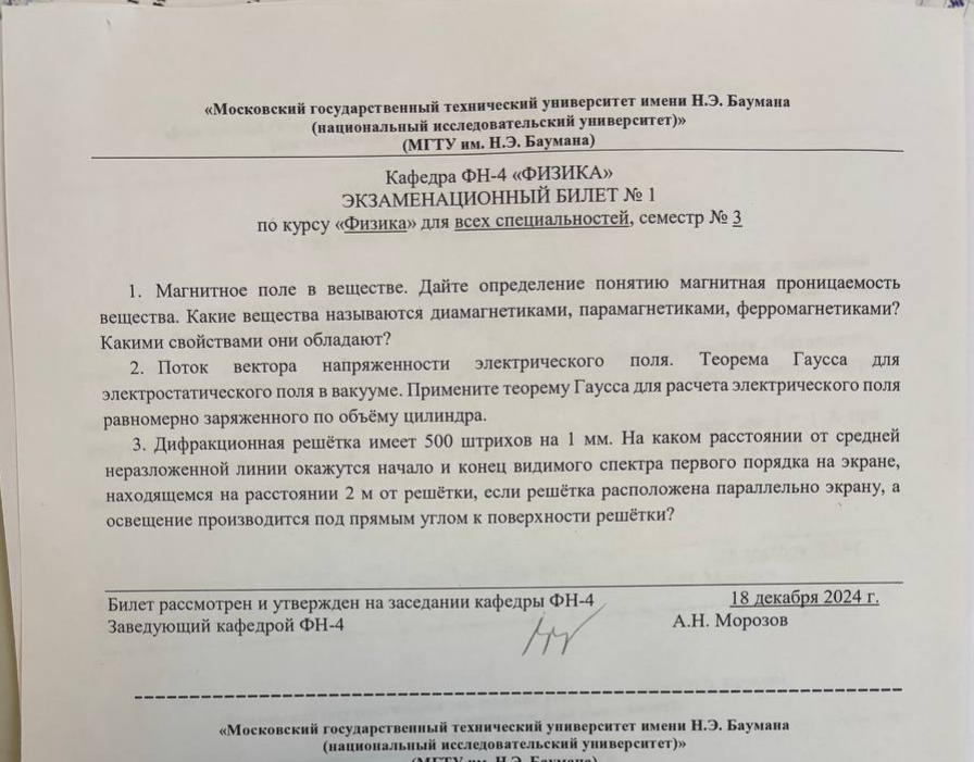 Для студентов МГТУ им. Н.Э.Баумана по предмету ФизикаЭкзаменационные билетыЭкзаменационные билеты