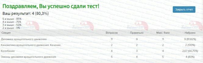Ответы к заданиям КМ-2: КМ-2. Механика вращательного и колебательного движения. Тестирование - 80.3%