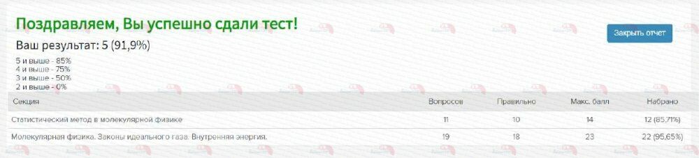 Ответы к заданиям КМ-3: КМ-3. Молекулярная физика. Тестирование - 91.9%