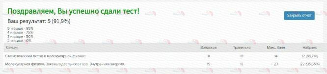 Курс Физика - КМ-3. Молекулярная физика. Тестирование - 91.9%