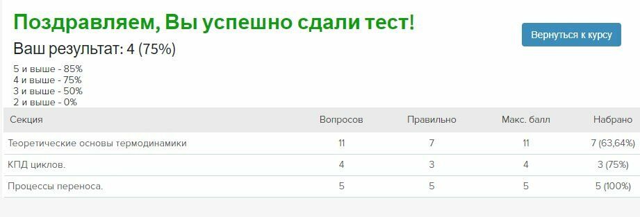 Курс Физика - КМ-4. Термодинамика. Тестирование - 75%