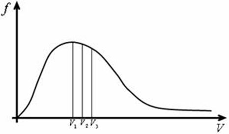 Указать номер скорости, задающей правильное расположение на графике f(V) наиболее вероятной скорости Ve