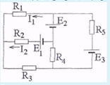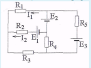 Найти сопротивление R2. R1=5 Ом, R3=3 Ом, R4=4 Ом, Е1=3 В, Е2=3 В, I1=2 A, I2=3 A.