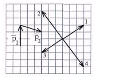Импульс тела p1 изменился под действием короткого удара и стал равным p2, как показано на рисунке. В каком направлении действовала сила ?