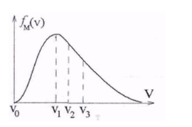 На рисунке представлен график распределения молекул идеального газа по величинам скоростей (распределение Максвелла), где