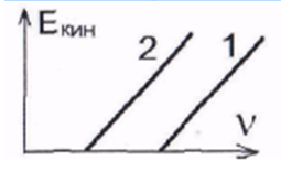 Графики зависимости кинетической энергии электронов, выбитых из двух металлов "1" и "2", от частоты v падающих фотонов имеют вид, изображенный на рисунке. Выберите правильное утверждение: