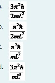 Микрочастица с массой m, находящаяся в одномерной прямоугольной потенциальной яме ширины L с бесконечно высокими стенками, переходит на основной, самый низкий разрешенный энергетический уровень с разрешенного уровня энергии, лежащего непосредственно над основным. При этом циклическая частота ω испущенного фотона будет равна: