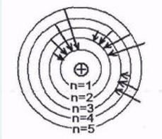 На рисунке схематически изображены стационарные орбиты атома водорода согласно модели Бора, а также условно изображены переходы электрона с одной стационарной орбиты на другую, сопровождающиеся испусканием фотона. Наибольшему импульсу испущенного фотона в серии Пашена соответствует следующий переход из тех, что приведены на рисунке: