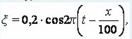 Уравнение плоской волны, распространяющейся вдоль оси ОХ, имеет вид. Тогда скорость распространения волны (в м/с) равна ...