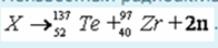 Неизвестный радиоактивный химический элемент самопроизвольно распадается по схеме: X → 13752Te + 9740Zr + 2n. Ядро этого элемента содержит
