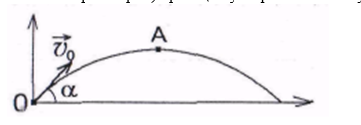 Камень бросили из точки О под углом α к горизонту с начальной скоростью v. Величина тангенциальной (касательной к траектории) проекции ускорения камня будет