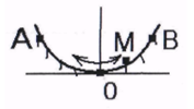 Материальная точка М свободно без трения скользит в поле силы тяжести по гладким стенкам симметричной ямы (А и В — наивысшие точки подъема). При этом величина нормальной к траектории проекции ускорения точки М