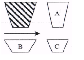 На борту космического корабля нанесена эмблема в виде геометрической фигуры. Из-за релятивистского сокращения длины эта фигура изменяет свою форму. Как она будет выглядеть для неподвижного наблюдателя, если корабль движется в направлении, указанном на рисунке стрелкой, со скоростью, сравнимой со скоростью света?