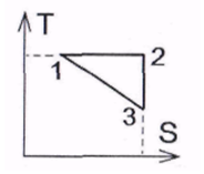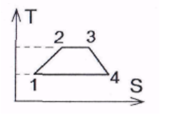 На рисунке представлен прямой цикл тепловой машины в координатах T-S, где T - термодинамическая температура, S - энтропия. Укажите участки, на которых тепло поступает в рабочее тело машины от нагревателей, и участки, где тепло отдается холодильнику: