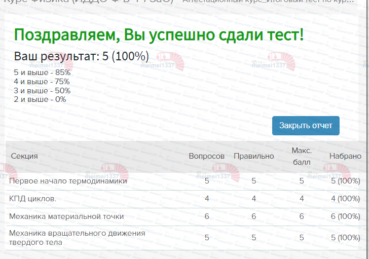 Курс Физика - ответы к тестам: