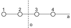 • 3.6. Четыре маленьких шарика расположены вдоль прямой а. Расстояния между соседними шариками одинаковы. Массы шариков слева направо: 1 г, 2 г, 3 г, 4 г.