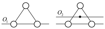 3.7. Три маленьких шарика расположены в вершинах правильного треугольника. Момент инерции системы относительно оси O1, проходящей через два шарика, I1. Момент инерции системы относительно оси O2, проходящей через геометрический центр треугольника и параллельной предыдущей оси, I2. Можно утверждать, что…