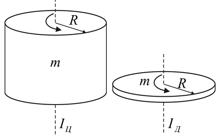 • 3.8. Диск и цилиндр имеют одинаковые массы и радиусы. Сравните моменты инерции тел…