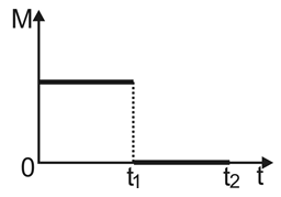 3.21. Диск вращается равномерно с некоторой угловой скоростью ω . Начиная с момента времени t = 0, на него действует момент сил, зависимость которого от времени представлена на графике. Какой из рисунков правильно отражает зависимость момента импульса диска от времени?