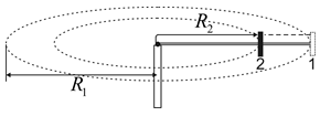 3.29. Вокруг неподвижной оси с угловой скоростью ω1 свободно вращается система из невесомого стержня и массивной шайбы, которая удерживается нитью на расстоянии R1 от оси вращения. Потянув нить, шайбу перевели в положение 2, и она стала двигаться по окружности радиусом R2 = 2/3R1 с угловой скоростью…