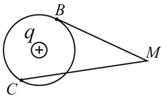 1.6. Заряженную частицу перемещают в электростатическом поле точечного заряда q из точки M в точку B или C. Сравнить работу сил электрического поля на участках МВ и МС.