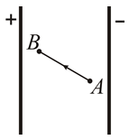 1.5. В электрическом поле плоского конденсатора перемещается точечный заряд – q в направлении, указанном стрелкой. Какую работу совершают силы электрического поля при перемещении заряда?