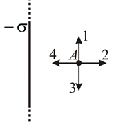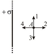 • 1.11. Электрическое поле создано бесконечной равномерно заряженной плоскостью. Укажите направление вектора градиента потенциала поля в точке A.