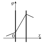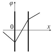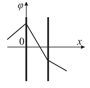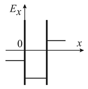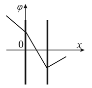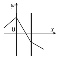 1.15. Электрическое поле создано двумя бесконечными параллельными заряженными плоскостями. На рисунке дана зависимость изменения потенциала φ этого поля от координаты x вне пластин и между пластинами. Какой рисунок правильно отражает зависимость проекции напряженности поля Ex?