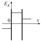 1.33. Электрическое поле создано двумя бесконечными параллельными заряженными плоскостями. На каком рисунке показана зависимость проекции напряженности поля Ex от координаты x вне пластин и между пластинами?