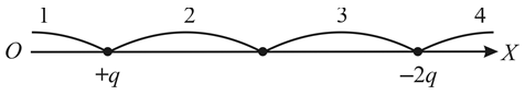 1.38. На каком участке оси ОХ проходящей через точечные заряды +q и –2q находится точка, в которой напряженность электрического поля равна нулю?
