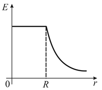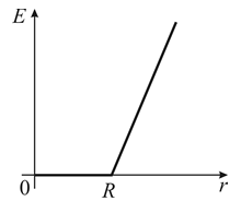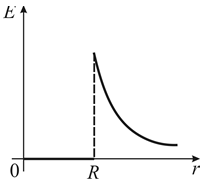 1.39. На каком рисунке верно изображена зависимость модуля вектора напряженности электрического поля равномерно заряженной сферы радиуса R, от расстояния от ее центра до заданной точки поля?