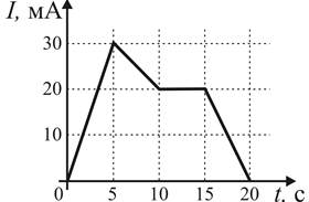 2.11. На рисунке представлена зависимость силы тока в проводнике от времени. Определить заряд (в мКл), прошедший по проводнику за время от 0 до 20 с.