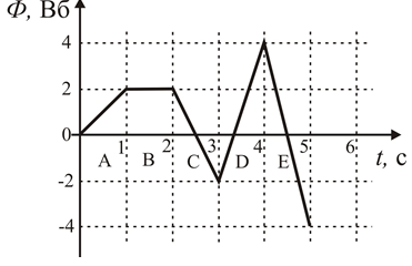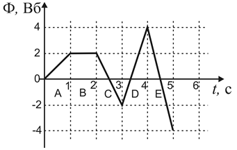 4.1. На рисунке представлена зависимость магнитного потока, пронизывающего некоторый замкнутый контур, от времени. На каком интервале времени ЭДС индукции в контуре по модулю максимальна?