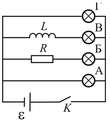 4.12. Какая лампочка цепи загорится позже других после замыкания ключа К?