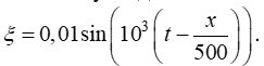 - 1.13. Уравнение плоской синусоидальной волны, распространяющейся вдоль оси OX, имеет вид ζ = 0,01sin(103t-2x). Скорость распространяющейся волны (в м/с) равна…