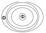 1.39. Масляное пятно на поверхности воды имеет вид, показанный на рисунке. Толщина пятна от края к центру… ![]()