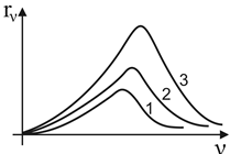 2.2. На рисунке представлены графики зависимости спектральной плотности энергетической светимости абсолютно черного тела от частоты при различных температурах. Наименьшей температуре соответствует график...