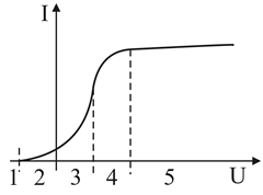 2.14. Полному торможению электронов на вольтамперной характеристике фотоэлемента соответствует область, отмеченная цифрой…