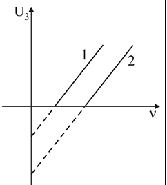 • 2.15. На рисунке представлены зависимости задерживающего напряжения U3 от частоты v падающего на металл света. Укажите верные утверждения: