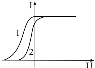 2.19. Длина волны света, падающего на фотоэлемент постоянна. При увеличении светового потока Ф2 > Ф1 вольтамперная характеристика изменяется так, как показано на рисунке…