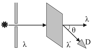 2.23. В опыте, изображенном на рисунке, детектор (D), который регистрирует длину волны рассеянных гамма квантов, расположен под углом ∅. При увеличении угла ∅ длина волны регистрируемых квантов будет…