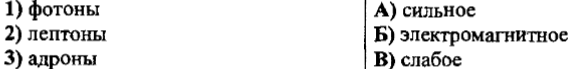4.23. Установить соответствие элементарных частиц типам фундаментальных взаимодействий: