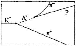 4.36. На рисунке показана фотография взаимодействия Ko-мезона с протоном в водородной пузырьковой камере, которое идет по схеме