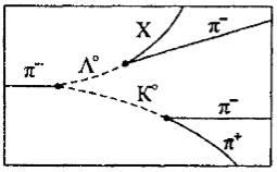 4.35. На рисунке показана фотография взаимодействия π-мезона с протоном в водородной пузырьковой камере, которое идет по схеме