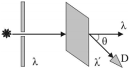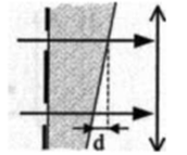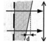 ЗАДАЧА 29. Одна сторона стеклянного клина закрыта экраном с двумя щелями, как показано на рисунке. На клин, перпендикулярно его поверхности, падает световой пучок, который после прохождения клина собирается линзой. Длина падающей волны λ; в стекле она меньше, и равна 2/3λ. При какой разности толщины клина d около щелей интенсивность света в фокусе линзы будет минимальной?